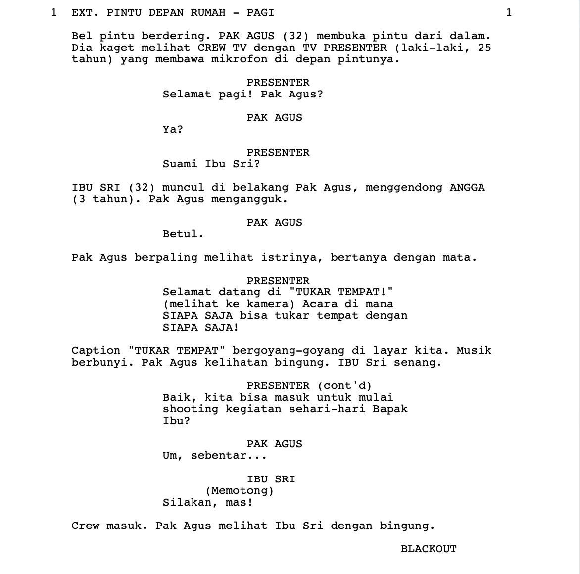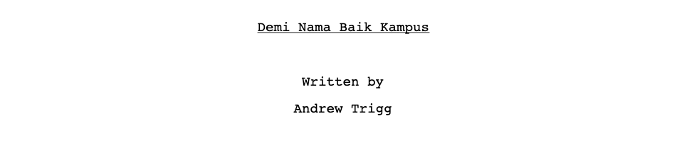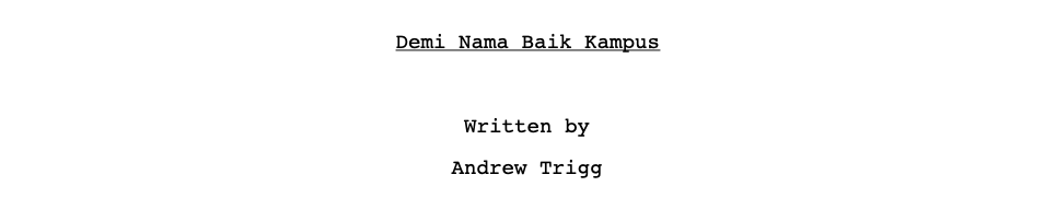 The first page of two of my screenplays. For me, writing begins with detailed research and deep empathy for all the characters – even the antagonists. I write grounded stories that are driven by the main character’s choices. I keep on writing and revising the script until it excites and moves me.